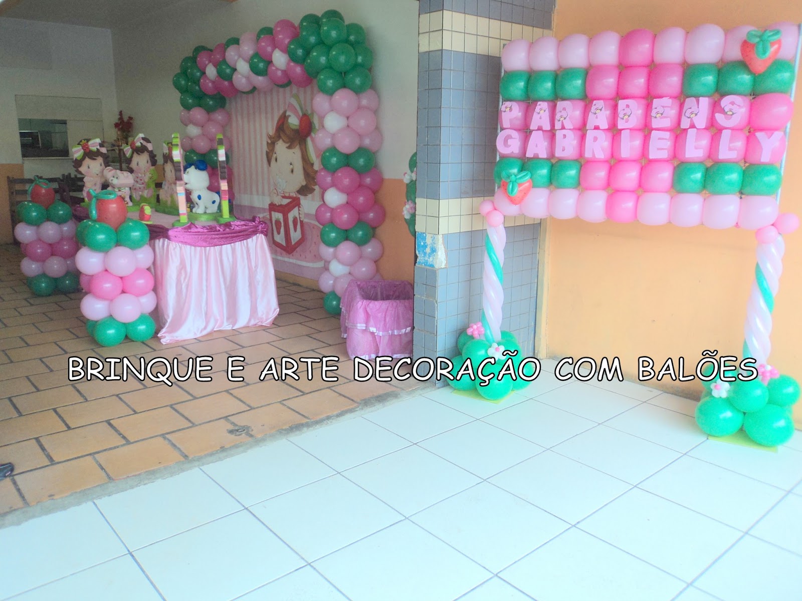 DECORAÇÃO COM BALÕES TEMA MORANGUINHO BABY